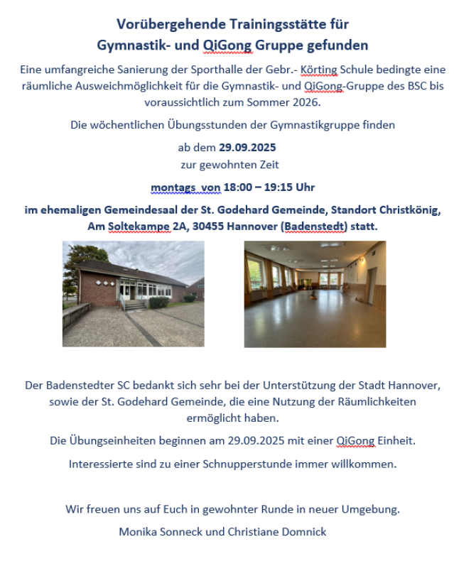 Der Badenstedter Sport-Club – kurz: BSC genannt – hat eine kleine Gymnastiksparte.